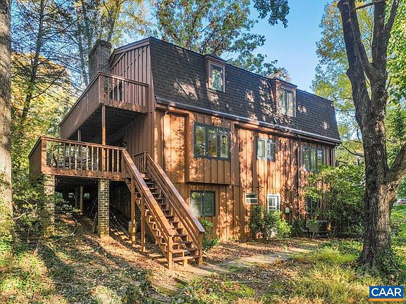 OPEN HOUSE SUN 2-4pm Don't miss the opportunity to live in this coveted Albemarle neighborhood so close to town. Located on the quiet end of a cul-de-sac around a green circle with lots of mature plantings, this property enjoys nice privacy. Large 1/3 acre lot joins with other large lots to form a valley of trees behind this home. From the back yard and from a deck off the den & an upper deck off the primary BR, look into a long view of dappled sunlight coming through the high canopy of large trees. There are lots of birds and a stream among the parklike woods here. Traditional colonial layout has 4 BRs all on the 2nd floor with large living spaces on the main floor. Large kitchen has original finishes all in good condition with a large breakfast room and ample pantry space. Two wood burning fireplaces, one in the den on the main level, one in the family room on the terrace level. Hardwood floors are in excellent condition. Lower level walks out to the back yard. Workshop/art studio on the lower level could be made into more bedrooms or office space with the addition of flooring. Only a 20 min walk to Barracks Road Shopping Center where you can find groceries, coffee shops, restaurants and services. Access to nice walking trails..