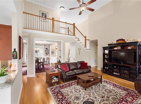 NEW LISTING - Virtual Showings/Walkthrough ; Stunning classic Craftsman with YEAR ROUND mountain views in sought-after gated Village Park Community. Immaculately built and conveniently located 10 minutes from Downtown Asheville in AC Reynolds District 28803. Minutes to hiking and biking on the Blue Ridge Parkway. Enjoy entertaining with open main level. Custom kitchen flows into cozy breakfast nook, coffered ceiling dining room, light-filled vaulted living room with natural gas fireplace, and expansive back deck for great entertaining. Serene master on main with spacious ensuite bathroom. Ample storage throughout. Upper level has three bedrooms and Jack and Jill full bath. Tons of flex space throughout. Walk-out basement with full in-law suite, billiard room, and bonus rooms provides lots of options. Sunny backyard is ready for your garden. Sit by the fire pit and enjoy the relaxing sound from the stream surrounded by Japanese Cherry and Maple trees, blueberry, rose, azaleas.