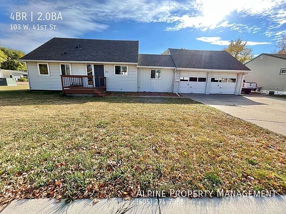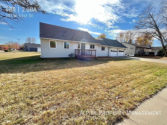 Call today to schedule a tour of this beautifully updated 4 Bed/2 Bath single family home for rent at 103 W. 41st St. Sioux Falls, SD 57105. The home features beautifully refinished original hardwood flooring throughout the living/dining areas. The kitchen comes equipped with stainless steel appliances - refrigerator, stove, dishwasher, microwave. Washer/dryer also included on the main level. There is an attached two car garage and a large backyard, as well as an unfinished basement for plenty of storage room. Two bedrooms and a full bath on each level as well. (Large Garage south of property NOT included) - $65 application fee per adult - $1550 security deposit - Section 8 not accepted - Tenants are responsible for all utilities and lawn/snow care - Pet friendly (2 max) and non-smoking Professionally leased by Alpine Property Management Attached Two Car Garage Central Heating/Cooling Hardwood Flooring Large Yard Non Smoking None Pet Friendly Stove Tub Shower Washer/Dryer In Unit