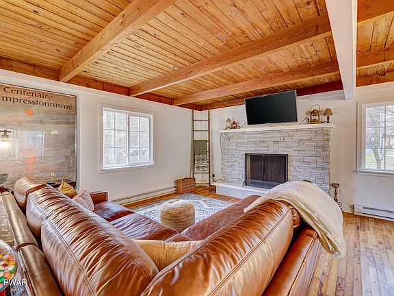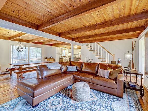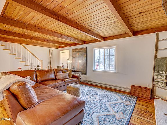 OFFERS DUE BY 2/28 AT 12:00PM. This unique Tanglwood Lakes home has it all. The property backs up to state game lands and has plenty of space outdoors for entertaining with friends and family. Features include a newer roof, renovated bathrooms, refinished hardwood floors, updated kitchen, granite countertops, SS appliances, tongue and groove ceilings with exposed beams and tons of character! Most furniture included.Lake access to Lake Wallenpaupack and Tanglwood Lake, close to I84, and just 2 hours from the city.