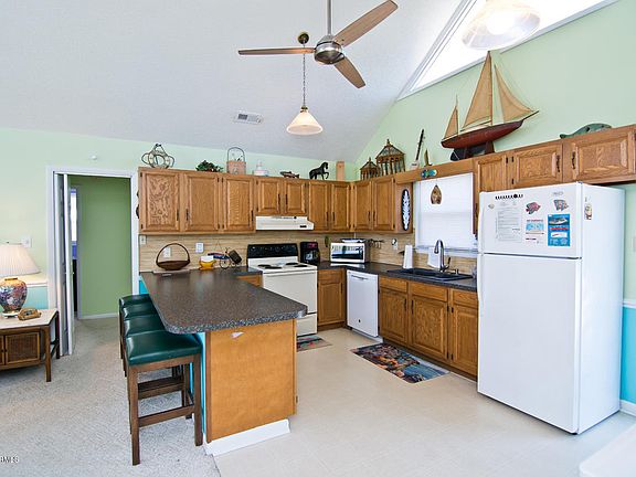 Gorgeous 3rd row beach cottage with views of the Atlantic Ocean. This 4 bedroom/2 bath property has been maintained meticulously and has many upgrades throughout. The large kitchen and living area is open and airy with its vaulted ceilings and large glass sliding doors opening up to the deck. Beach access is right down the road making this a wonderful vacation rental or 2nd home. Upgrades include New front and rear decks, new Trane heat pump, new vinyl windows, and remodeled baths (please see ''uprades and improvements'' document for more details). Large, organized storage room allows for kayak, paddle board, bike and fishing rods storage along with additional storage room with washer and dryer. Don't let this one slip by!