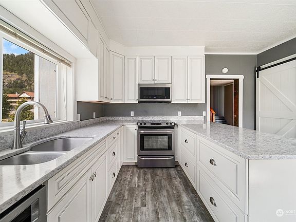 This charming 4-bed, 2-bath Leavenworth home has been recently updated to showcase a beautiful, modern interior and boasts many impressive features. Fully renovated kitchen with Quartz countertops, new electrical panel, and the backyard is fenced, providing privacy and security. Large windows throughout the home flood the space with natural light & offer stunning views of the surrounding area. Situated in a top-rated school district & within walking distance to downtown Leavenworth, Enchantment Park, and Blackbird Island. The backyard provides a great space for entertaining and relaxing with plenty of privacy. Overall, this updated gem is a must-see for anyone looking for a stylish and comfortable home in a prime location.