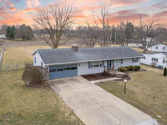 Cherished by its owners for 32 years, this delightful ranch home on approximately .64 acres offers serene living. Enjoy the picturesque views of the fully fenced backyard from the rear screened porch. Featuring three bedrooms and one and a half bathrooms, this home also boasts a partially finished basement with a cozy brick fireplace in the recreation room and a convenient study area. Updates include new windows and sliding door in 2020, fresh window treatments in 2020, a chimney tuck point in 2021, bath remodel in 2016. Two-car garage. This home is a perfect blend of comfort and charm.