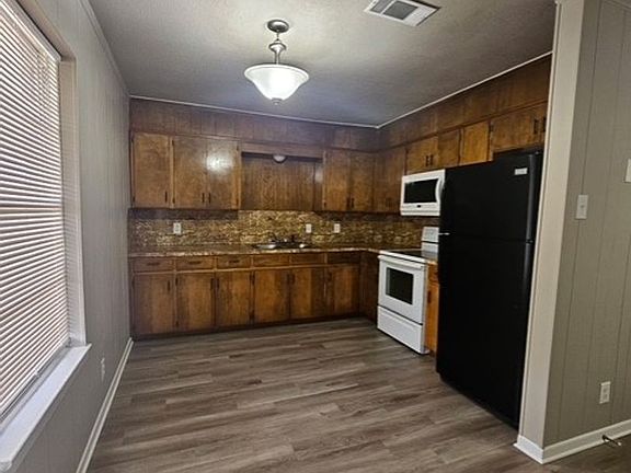 This cozy home features laminate, tile, and carpet flooring throughout for both style and comfort. The kitchen is equipped with a refrigerator, stove, and microwaveready for all your cooking needs.