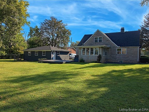 BEAUTIFUL BEDFORD STONE IN THE HEART OF CLARKSVILLE SITTING ON OVER A HALF ACRE CORNER LOT!!! If you are looking for a home with lots of space and loaded with character, this is it! Step inside to the living room which features a gorgeous stone fireplace and two picture windows to soak in the parklike views. You will love the arched doorways and the dining area with French doors that lead to the sunroom with a wood stove. The kitchen has granite countertops, lots of cabinets, a pantry and all stainless steel appliances remain. Take the stairs to the 2nd floor to the magnificent primary ensuite with jetted tub, sitting area/home office space, massive walk-in closet and separate shower. Extend your entertainment to the family room in the basement with a full 2nd kitchen (all appliances remain), 3rd full bath and additional room to finish. Detached oversized garage houses a full bath and furnace so you can work on vehicles or other hobbies year round. Amazing location just a couple minutes to the interstate and bridges! Buyer(s) agent to verify taxes, exemptions, HOA/restrictions and school system. All measurements are approximate. If important, buyer(s) or buyer(s) agent to verify.