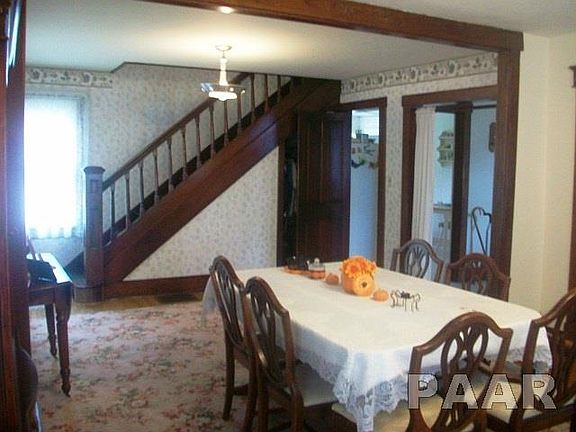 This 5BR home is beautiful inside and very well maintained. From the minute you walk thru the door you can see the pride in ownership. The roof on the house & gar. 98, furnace 2011, wt. htr. 2000, & kitchen remodel in 98. This home offers natural woodwork on the main level, open wood staircase, & original hard wood floors. It also offers an over sized 2 car gar., sits next to the town baseball diamond & across the street from the Spoon River Drive. There is a well & cistern on the property that seller has never used or has any knowledge. Estimated taxes with only an own/occup. exemp $965.00