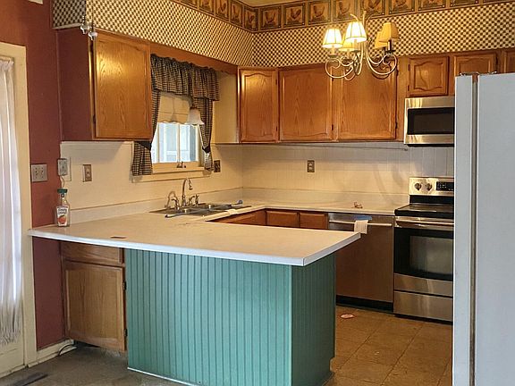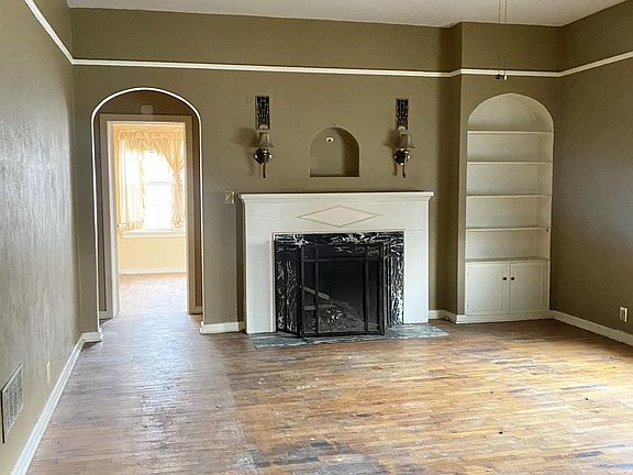 Adorable Bungalow styled Home on a great sized corner lot waiting on some TLC! Several entrances to access this spacious 3BR, 2BA, full basement home. Lots of character throughout this home waiting for your updates and repairs to be MOVE-IN ready! Arched doorways to most hallways, fireplace in living room, kitchen/dining combo, original hardwood-flooring, stainless steel appliances, built-in cabinetry, and shelving. Windows galore for endless natural lighting. Exterior features covered front door and side door, and another side door for easy access to kitchen! Rain gutters plus a detached 14' x 28' garage in a fenced-in backyard waiting for a beautiful garden. Don't miss out! Property is lender-owned, is being sold ''as-is'', and seller makes no representations or warranties.
