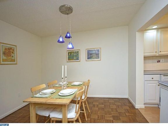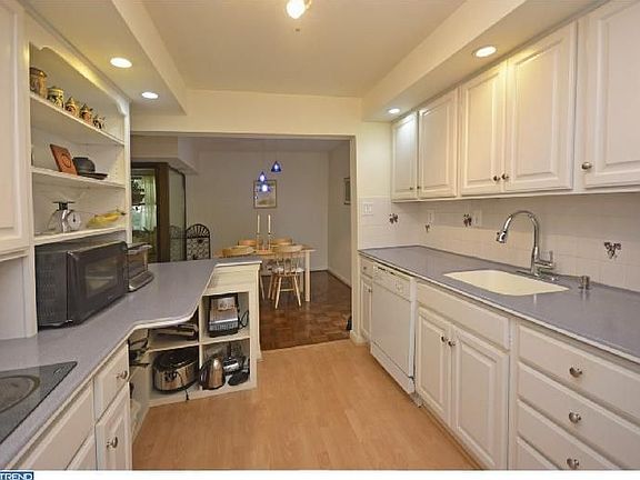 Impeccably maintained two bedroom two bath first floor condo at the Cricket Club Condominiums, a 25 unit low rise building within walking distance to Suburban Square and all that Ardmore has to offer. Updated galley style kitchen, dining area, living room area that opens to a ceramic tiled sunroom. Generously sized master bedroom w/ private dressing area and full bath. Second nicely sized bedroom and full bath on the hallway. Ample closets throughout, additional storage to be found one floor below on lower level. Updated modern lighting throughout, new heater installed in 2008, new hot water heater 2011. Responsive management in a quiet building with very low condo fees ($285/month). Unit sits on the back of the building making it quiet with views of the tree line behind it. Small park-like area offered for the use of all residents. Perfect one floor, convenient living in the heart of Ardmore. One time capital contribution of $500 due at the time of settlement.