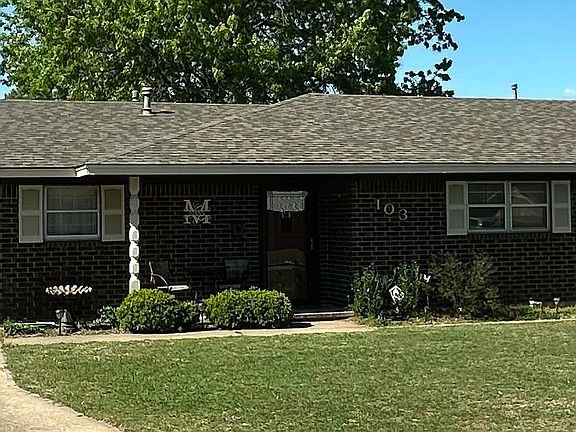 This well-maintained home with its open concept living/dining area has 2 or 3 bedrooms with sizable closets and 1 1/2 baths. The third room/bedroom space can be used for either a bedroom or studio multi-purpose room. This house has an abundance of storage. Notable, are ash cabinets and bookcases, a walk-in pantry, a large storage or plant room connected to the multi-purpose room, and 5 closets. This 1990 square foot home sits on 3 1/2 city lots, big enough for a substantial garden for those with a green thumb. The house sits on a slab foundation and includes one garage. Surrounding the home, the property includes a covered walkway from the rear garage door to a sizable dry cellar with built in shelves. Beyond the cellar to the back of the property, a large workshop with electricity sits on a concrete slab and includes an inside storage or work area plus a large, covered carport open to the outdoors that may also be used for additional parking. For those with large equipment to cover, an RV parking pad with a tall awning cover is accessible from the alley. In March 2025, updates were made to this house. The facia and other trim on the outside of house including shutters and garage door were painted. Then after inspection of house by a plumber, the owners acted on his recommendations and had one new toilet and sink with faucet installed in the half bath, sink faucet in full bath, plus replaced two outdoor faucets. In the kitchen a new dishwasher and slide in stove were installed. The refrigerator stays upon request of the buyer. This house has central/heat & air and two hot water tanks in good working condition. A gas built in wall heater is a plus for those extremely cold winter days. In 2020 a new shingled roof was installed. The property has been owned by the builder and wife for 50 years. Joe Mann was a finish carpenter for almost 40 years in the Marlow area. He is noted for quality work as a contractor, building houses from the ground up to the finish cabinets and trim. Built in 1974, this house is a testament to his craftsmanship.