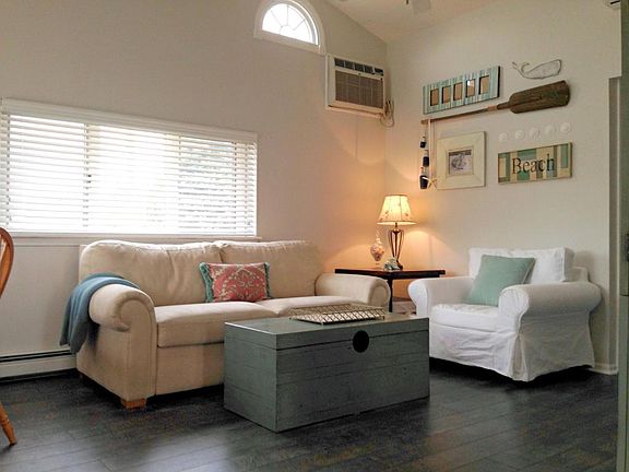 This beautifully furnished and decorated cottage is on owned land and only a short walk to the beach. Home features a bright open floor plan with skylight, larger bathroom, washer, dryer, stainless steel appliances, dishwasher, split-duct air conditioning, hot water baseboard heat, wood look laminate and ceramic tile floors.
