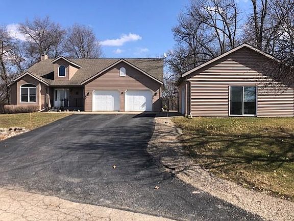 This gorgeous home is in absolutely mint condition and is located on edge of town on 2acres with quiet wooded back yard. Main floor has a large master suite with full bath and walk-in closet and deck. Formal dining and living room have beautiful wood floors and open floor plan. Kitchen has a center island and eat-in kitchen area. 1/2 bath with pocket door and main floor laundry. 2nd level has 2 large bedrooms, full bath, walk-in storage room and open family room/office area. Lower level is partially finished with a family room with wet bar, rough-in for additional bath and 4th bedroom bedroom. 2-car attached garage is finished and the detached garage is finished and heated. Fenced back yard is ideal for pets. New maintenance free front porch is ideal for relaxing.
