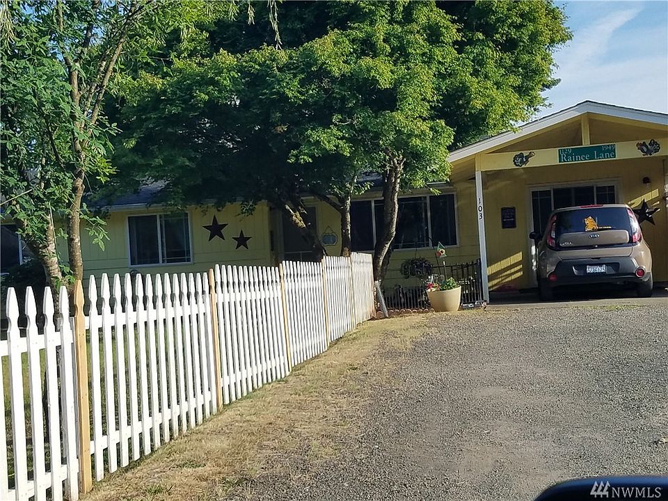 Newer roof, back siding, recently painted exterior, large fenced back yard, and a huge .44 acre lot are just some of the features of this property. 2 bdrm, 1 full ba, newer kitchen flooring & cupboards , laundry area off the kitchen, and a large family room. Outside includes an attached carport in front, covered patio in back, detached shop, fruit trees and large side yard. Located at the end of the road with walking path to pedestrian overpass. family room can be large master bedroom