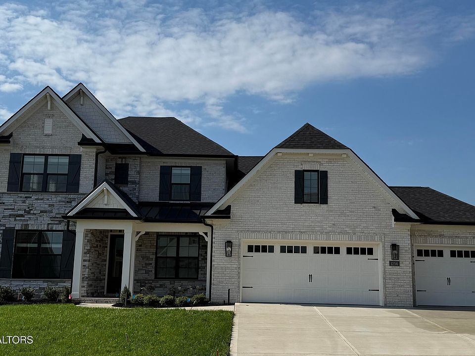 Aspen Old World plan with 3 car garage, 5 bedrooms, 4 1/2 baths, extended breakfast area and extended rear covered porch with fireplace located in the Grove at Boyd Station across form McFee park in Farragut.