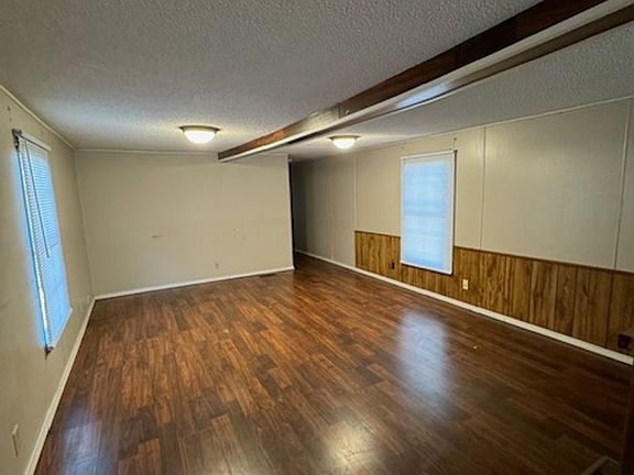 2 bedroom 1 bath single wide mobile home. Kitchen includes electric stove and refrigerator. There is dining area and living room. Laundry area with hook ups. The home has partially fenced yard in front and back & back patio. Central heating & air. Trash pick up included. NO PETS