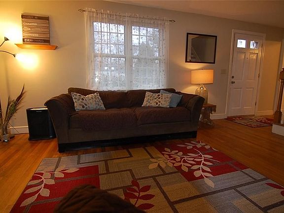 This is a Lovely traditional cape on a corner lot overlooking Bicknell Park. The first floor offers a living room with wood burning fireplace, a large bedroom and separate bath with shower stall. The dining room has a charming built-in cabinet and hardwoods. A french door in the kitchen leads out to a patio and sun-filled back yard. There are 2 spacious bedrooms on the second floor, hardwoods and an updated bathroom with 2 sinks. The basement has a super rec room and also a dedicated room with pocket door for an office, video game room, craft room, etc. This is a beautiful, quiet street in desirable Primrose school district and very close to the Middle and High schools. The backyard is fenced and has a charming storage shed. Quick and easy access to highway, close to East Bay Bike Path. This is a great opportunity to live in Barrington and create your own dream house. Subject to seller purchasing.