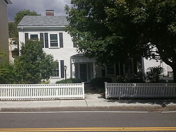 Brookline Village...1798 Colonial with white picket fence.. offers 9 rooms, 4 bedrooms and 3 full bathrooms. Large eat-in kithcen w/ wood burning stove. Fireplace in living and dining room. One of the features of this residence is wide plank floors. A wonderful home with great period detail in a desirable location... close to "T" and bus.