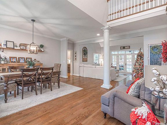 This beautiful 4BR/3.5BA showplace has a charming Southern front porch with a winter lake view. It is located on the tee box of Timberlake's signature 18th hole and also has views of the spectacular 17th hole. The floor plan is very open with a first floor master suite and gleaming hardwoods throughout the main living areas. There is also a flexible FROG. You will absolutely love your screen porch and the storage between the multiple walk-in closets and the walk-in attic is amazing. Club memberships are available and include golf, tennis, pool, fitness & restaurant. There are also boat slips available!