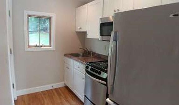 1 bedroom in first floor of 3 unit building. Hardwood floors in living room and bedroom. Vinyl in galley kitchen. Decent closet space. Laundromat across the street. 1 car parking. Tenant pays gas heat/hot water. Great location -- near Route 126 and easy access to Route 9, Route 20 & Mass Pike. First, last, security plus 1/2 month realtor fee required. One person occupancy per state sanitation code.
