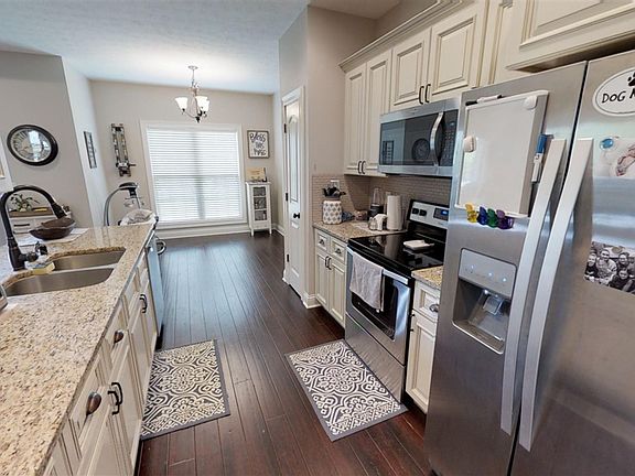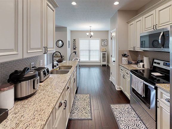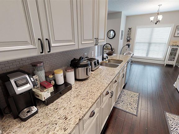 Absolutely charming open ranch style split floor plan with a walk out basementThis home provides all the upgraded finishes you could ask for. Gorgeous Granite countertops not just in the kitchen but all the bathrooms as well. The tastefully designed kitchen boasts a large pantry, granite breakfast bar, and a tiled backsplash. Separate breakfast area along with an open formal dining space give you plenty of dining options. Beautiful wood flooring throughout all the living spaces and bedrooms as well. Trey ceilings in both the living room and master bedroom. The large master bedroom has its own private entrance to the covered balcony overlooking your private back yard. The master bathroom comes complete with a large double vanity on granite countertops. Separate garden tub, closeted toilet room and a large well organized walk in closet. The open basement provides great space for play, storage and potential for additional living space. The basement offers several windows for natural light. A separate basement lawn garage is a very handy feature you will appreciate. The side basement walk out brings you to a large concrete patio. concrete landscape curbing and so much more.