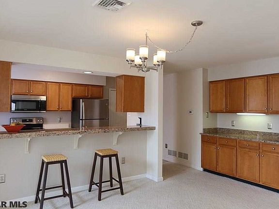 Delightful condo offers 3 bedrooms, 3 full baths, easy living & convenient access to many desirable venues. The kitchen features a granite breakfast bar with open views to the dining & sunroom, delivering a spacious feel. Numerous windows & doors provide pleasant natural light and inviting living spaces. The family room is vaulted and generous with access to an outdoor patio. You'll value the privacy and location of the bedrooms. The owner's ensuite is complete with dual sinks, soaking tub & shower. Another bedroom and full bath complete the main living area. Guests will love the upper level bedroom & private full bath. Other highlights include central air, 2-car expansive garage with storage. Beautiful area offers splendid mountain views & numerous bike paths. Downtown, campus & convenient bus stops, nearby shopping, restaurants. Monthly fee of $410 includes: awesome clubhouse with socializing areas, kitchen, gym & in-ground swimming pool.