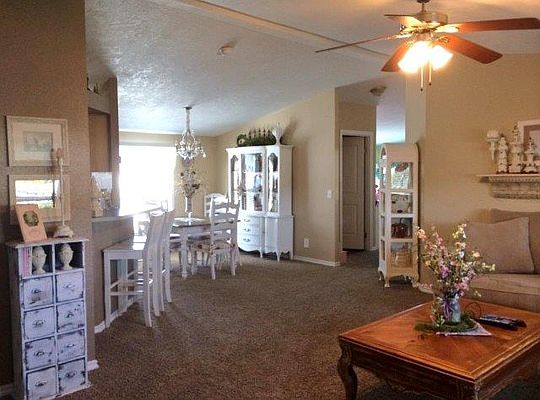 2004 Golden West with open floor plan. In like-new condition with many updates, including new paint, new flooring, new plumbing fixtures, new hot water tank, custom closets throughout, and new appliances. Very clean, shows pride of ownership. Split master suite. Great location on corner lot with large fenced yard, in-ground sprinklers, tool shed, and plenty of parking.