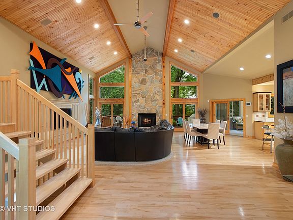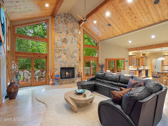 Stunning custom built contemporary on a beautiful .6 acre lot! Open and airy with vaulted ceilings and walls of windows with loads of natural light streaming in. Gorgeous floor to ceiling stone fireplace is focal point of kitchen, living room, dining room area. Kitchen features high end cabinetry with pull-outs, granite counters, large island with seating, gleaming hardwood floors. Adjoining three season sun room and deck are perfect for relaxing and entertaining. Vaulted luxury master suite has his-and-hers closets, a spa-like bathroom including oversized shower, whirlpool tub, double vanity, custom tile work. Huge English lower level with rough-in just waiting for your finishing touches. Two tankless hot water heaters, energy efficient zoned furnace. Special accent lighting both inside and out plus beautiful views of nature from nearly every window! Feel like you are on vacation year around! Swim, boat, fish, tennis, many social activities for all. Award winning Barrington Schools! Home Warranty Included! Sellers have provided information related to taxes to the township in an effort to lower the taxes.