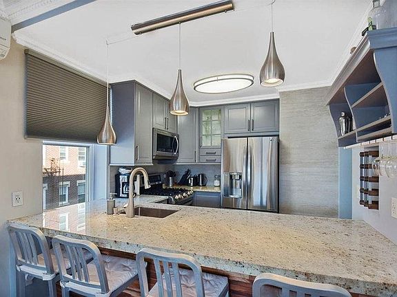 FURNISHED RENTAL! SHORT TERM IS OKAY! Fully updated and bright 3BR/2BA condo located steps from Blvd East with 24hrs buses in/out of NYC, gorgeous parks and running trails, and breathtaking city views. Access to ferry, close to cafes, dining, and grocery stores. The unit is highlighted by rich dentil crown molding and gorgeous fixtures throughout, beautifully renovated kitchen with stainless steel appliances, recessed pendant lighting, granite counters, washer/dryer combo, dishwasher, and breakfast bar to seat 4 with accented trendy wood inlays. Main bedroom features hardwood floors and deluxe attached bath. Available 6/1/21.