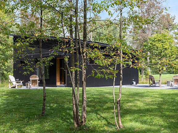 This remarkable property embodies the Danish principle of hygge. Two custom-built, net-zero, Scandinavian-inspired homes await you, tucked off a private road abutting conserved land. Architecturally planned and landscaped to give each home privacy, the buildings exist in harmony with each other and their surroundings, yet pop against their gladed backdrop with striking corrugated exteriors that epitomize the low-maintenance approach of this design. Spatial mindfulness has led every decision, from clean lines and open viewways inside and out, to the homes’ orientation using passive house principles, effortlessly stabilizing indoor temps year-round. The main house has 10ft ceilings while the ADU’s are even higher. Both offer maple cabinets, quartz, high end stainless appliances, polished concrete floors, and so much more. Superior practices and materials have produced stunning results, all while surpassing Efficiency VT’s highest certifications. Using no fossil fuels, the owned 32 solar panels provide more energy than needed for both homes. Beautiful Danish Morso wood stove compliments the Scandinavian aesthetic. German Triple pane windows, Level 2 EV charger, a complete thermal break around both homes, 17" walls, heat recovery ventilation throughout, and far too many other features to list here; please see attached sheet. Opportunity for footprint expansion within the building envelope and wastewater capacity for four bedrooms; this singular property will not be found again.