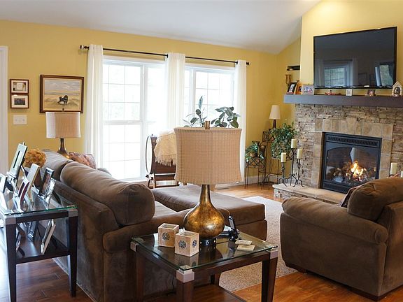 Built in 2013. Sliders to deck over looking 1.3 acre private fenced yard. Great open floor plan, vaulted ceilings throughout, stone fireplace. Granite and stainless steel appliances. Full basement with full windows, ready to be finished. 1.5 car attached garage. Whole house generator.