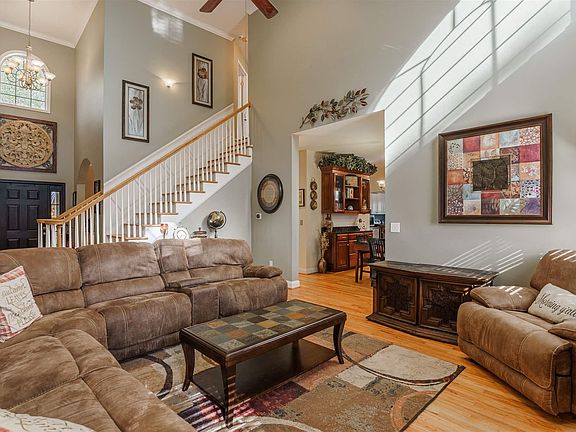 - Vaulted Ceiling(s), High Ceilings, Ceiling Fan, Floors-Hardwood, Molding
