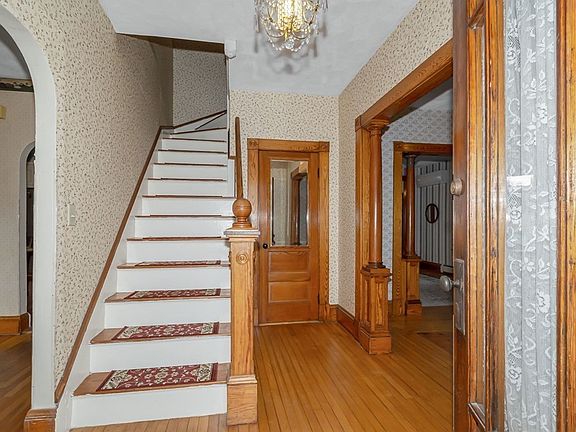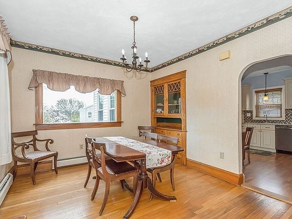 Welcome to this Antique Cape style home with a farmer's porch and pretty landscaped lot. This home offers all the charm from yesteryear but with today's conveniences! Walk into the sunroom which opens to the wonderful eat-in cabinet packed kitchen with granite counters, tile backsplash and stainless steel appliances. Built-in cabinet in the dining room, formal living room and office all with plenty of windows for natural lighting. A spacious family room with ceiling fan and sliders to the deck that overlooks the nice level back yard. Upstairs is the Main bedroom with double closets and ensuite, 3 more bedrooms, one with a walk-in closet and another full bath. There's lots of hardwood floors including some charming wide pine and a lot of wood framed entrances into rooms. An unfinished basement with a root cellar, a shed for storage and a patio for your outdoor entertaining!
