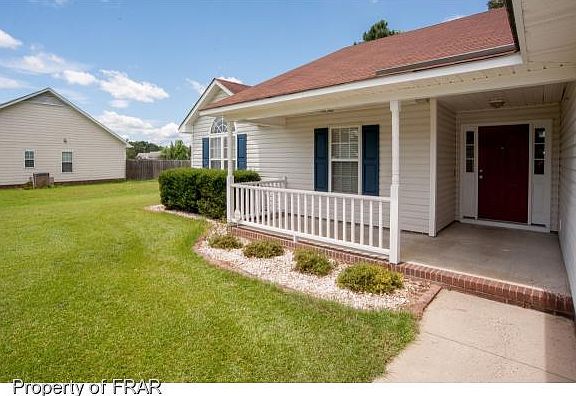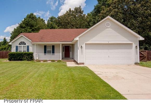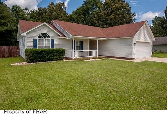 Small country subdivision approximately 9 miles to Fort Bragg on cul-de-sac. Wooded backyard, privacy fence, large deck. Great room with vaulted ceiling, wood burning fireplace. Master bedroom with trey ceiling. Master bath with garden tub, double sink, and separate shower. Move in ready.