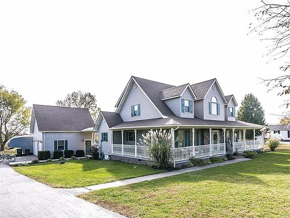 Here's your dream home! One owner custom built Cape Cod with master on first floor. Geothermal heat & air. Formal dining room and breakfast area. Kitchen with island open to living room with gas logs brick fireplace. Two large bedrooms upstairs with recently installed hardwood in loft & 1 BR. Wrap around porches almost around the entire home. Breezeway leads to two car garage with storage area upstairs plus matching storage buildings out back. Awesome back yard. Great location and superb subdivision. Home warranty included for new buyer! Won't last long! Call today!