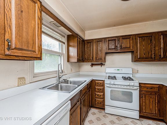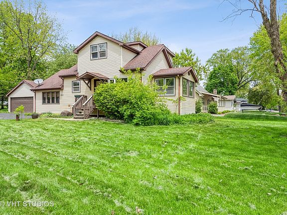 Diamond in the rough- the ability to make this house your own. Only 1 block from the Fox River on the corner of Harrison and Wildwood in Algonquin. River rights available, short walk to the river. 4bedrooms,2 baths and a large 2 1/2 car detached garage with parking space for several cars. Flooring in front room is new and also DW and disposal. Drainage was installed on the side of the house by the downspouts. Extra room at the bottom of stairs had insulation put under the floor, basement walls -- sealed cracks. House is being sold AS IS. There is a garage door opener but it is currently not working. There is a shower in the basement.