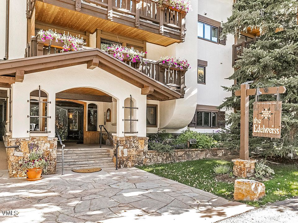 This lovely 2-bedroom, 2-bathroom condo is situated in one of Vail Village's most cherished boutique buildings, Edelweiss, nestled between Willow Park and Gore Creek. This ideal location is just off the International Bridge in the heart of Vail Village, yet quietly secluded on the Park. A ground level corner unit with big windows, abundant natural light, and an efficient floor plan, this property features assigned underground parking, a ski locker, bike storage, and an additional storage locker. This vintage Vail building has secure keypad access at all entry points and a cozy, welcoming common space with fireplace. A brief walk from Gondola One and just steps from all the restaurants, shops, and events in the Village, this mostly furnished property in a truly prime location is not to be missed. For more information, please feel free to visit mls.Edelweiss101.com.