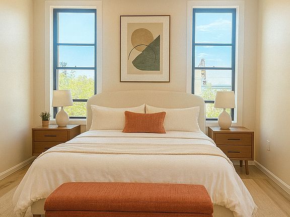 NO FEE (Credit check: $20) Qualified tenants only Applicants must have an active savings and checking account with sufficient funds. This new construction, walk-up building offers a media lounge for all tenants and a shared backyard, perfect for relaxing or entertaining. Step into a beautifully designed home featuring an open kitchen and Beechwood porcelain floors throughout. The residence includes two full bathrooms with elegant Italian tiling and two spacious bedrooms, washer and dryer in unit, fully luxurious chef's kitchen with stainless steel appliances and surround sound system for each bedroom and room: Primary bedroom: Fits a king-size bed and offers ample closet space. Second bedroom: Comfortably fits a queen-size bed, with an en suite bathroom for added privacy. With 10-foot ceilings, modern finishes, and a pet-friendly policy, this home perfectly blends comfort and style.