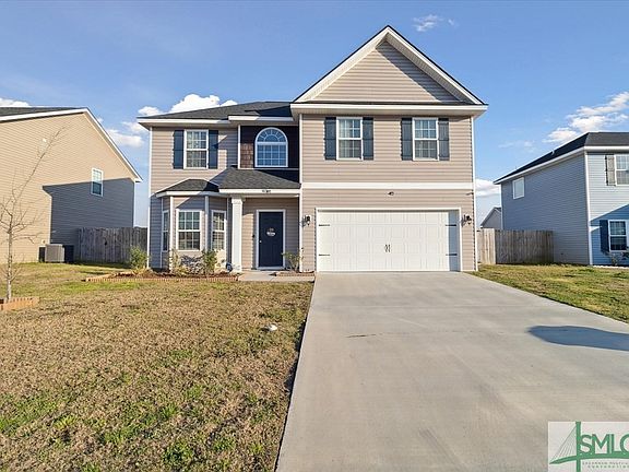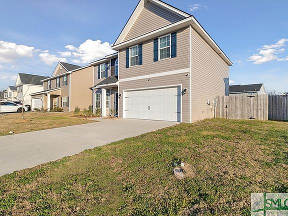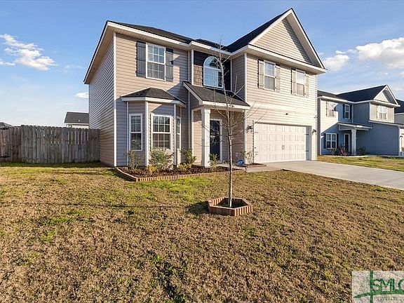 Welcome to Tranquil South, one of Fleminton's fastest growing neighborhoods! Constructed in 2021, this meticulously maintained home is better than new and move in ready! This open concept floor plan is a local favorite, featuring a formal dining room with wainscoting, a bay window, and coffered ceilings for some additional charm, along with luxury vinyl plank flooring throughout the downstairs for easy maintenance. The living room is open to the breakfast area and galley kitchen with stainless steel appliances, white shaker cabinetry, granite countertops, tiled backsplash, and an oversized pantry. Upstairs, three spacious guest bedrooms share a full bathroom and linen closet. The huge primary bedroom boasts a vaulted ceiling, two walk-in closets, dual vanities, garden tub, and a separate shower. Tranquil South is very close in proximity to nearby schools, shopping, fuel stations, multiple Ft. Stewart gates, and I-95.