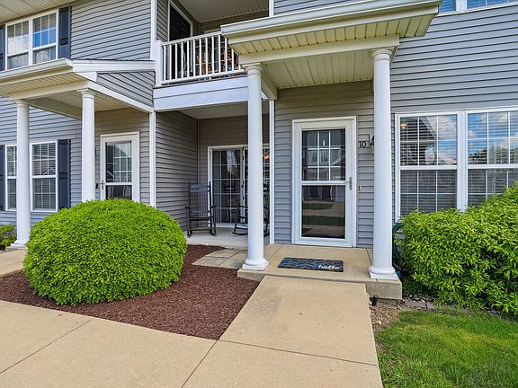 Welcome to your new home at 103 Yorkminster Ln #10 in Savoy. This inviting first-floor condo offers a blend of comfort and convenience in a highly sought-after location. This home has great great floorplan with natural light throughout The living room, dining room, and both bedrooms feature beautiful wood floors adding warmth and sophistication to the space. The kitchen is open to the dining room and includes a refrigerator, dishwasher, and microwave. The main bedroom features double closets, a full private bath complete with a dual vanity. The second bedroom is away from the main bedroom and next to the full hall bath. This condo includes a spacious unfinished basement that is roughed-in for a full bathroom and an egress window, providing additional potential for a bedroom and future finishing. A new roof was installed on April of 2024, and a new air conditioning unit was added in June of 2024, ensuring your comfort and peace of mind. Don't miss the opportunity to make this wonderful condo your new home.