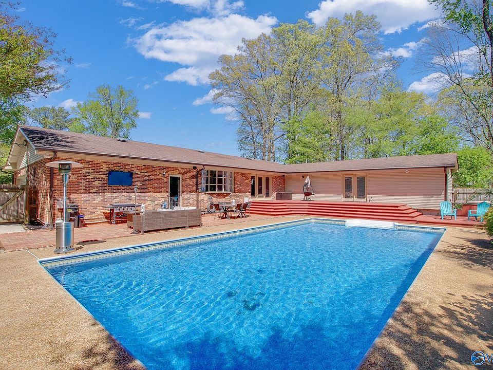North Alabama dreams come together with this entertainment ready updated ranch home. The comfort of a neighborhood with the privacy of a matured treed lot makes this backyard pool setup a getaway of its own. Inside this 4 bedroom home is a theatre style gaming room, open common areas, and many tasteful updates. The master suite has ample closet space with updated master bath. The open and spacious common areas provide a welcoming charm and warmth unique to a well cared for home of this era. Many newer mechanicals, appliances, windows and more lower the maintenance needs of this beautiful ranch. Love charm and entertainment?NO HOA! schedule a showing now. All info to be verified by purchaser.