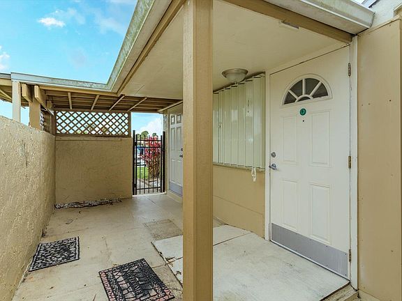 This unit's location is everything! It's a great corner unit with a spacious yard around the property, giving you the feeling of having your own yard while still enjoying townhome living. When you enter through the gate, there's a storage closet on your left and a pleasant outdoor sitting area to enjoy the Florida weather. As you enter the first door, you'll notice a wall that can be removed to create more open-air space. The previous owner used it as an extra room, but the potential for alteration is there. The unit is tiled throughout and features an open floor plan with a split layout. The kitchen was upgraded years ago with hardwood cabinets and quartz countertops, which still look fantastic. Schedule a showing today!
