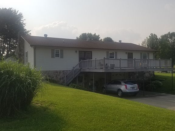 14.73 acres of beautiful level land w/ 1740 square ft. home w/ full basement w/ full bath, spacious master bedroom w/ full bath and whirlpool, hardwood, tile, large deck on back on back to sit and look over the beautiful land, 44 x 110 barn w/ 14 x 75 shed, concrete drive, 2 car garage in basement. This home and land have so much potential. City utilities w/ city sewer available.