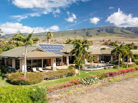 Find the ultimate in Maui resort-style living at 1030 Anapuni Place in Kaanapali’s Lanikeha community. With 5,006 sq. ft. of living space and an additional 902 sq. ft. covered lanai, this expansive 5-bedroom, 5.5-bathroom home in Kaanapali is both spacious and elegant. The entire property is oriented to take in the gorgeous setting. Entering the home, we are taken by the openness and the dramatic outer-island views in the backdrop. The great room boasts luxurious finishes such as vaulted ceilings with warm wood inlays, plantation-style ceiling fans, and stone walls. The entire ocean-facing side of the home has retractable sliding glass doors that connect the interior spaces with the lanai and pool area and allow for seamless indoor-outdoor living. The kitchen boasts stone counters, warm custom-wood cabinets, and high-end stainless-steel appliances. A massive center island creates the ultimate workspace and an informal dining area. The indoor-dining space next to the kitchen opens to the covered lanai, as does the adjacent family room, providing exquisite views from all spaces. Two of the 5 bedrooms are located on the kitchen and den-side of the home. Both bedrooms come with en-suite bathrooms and walk-in closets. On this wing, one also finds the laundry room and an additional powder room. The master suite is located on the opposite wing of the home. The bedroom boasts his and her closets, a dressing area, and an opulent indoor bathroom with soaking tub and shower, along with an outdoor shower located in the protected Zen garden. The master offers direct access to the covered lanai and affords incredible ocean views; two additional spacious bedrooms located on this side of the home feature en-suite bathrooms. The undulating lanai provides plenty of shaded space for dining - rain, or shine. Take in the gorgeous views while relaxing in the infinity-edge pool and hot tub. 1030 Anapuni Place is a quiet and peaceful haven for those seeking refined Maui living within easy access of activities and services. You are within 5 minutes of Kaanapali Beach and Whalers Village shops and restaurants and 10 minutes of Lahaina Town. The home is located just above the Kaanapali Golf Courses. Lanikeha owners also enjoy access to a fabulous community clubhouse with a gym, billiards, and a beautiful pool. Contact us to schedule a private showing of this stunning landmark property.
