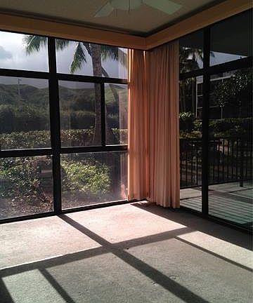 1st floor, end unit (no neighbor on one side!) 3 br/2 ba, 2 parking stalls, storage locker. Secured building offers privacy. Living Room & Master Bedroom open to lanai & garden. Walking distance to beach shopping & bus. You could live here without owning a car. Swimming pool, sauna, jacuzzi & tennis courts. Landscaped tropical setting with ponds & koi. Peaceful, quiet & private. Tenant must have renters insurance. Pet deposit required $500