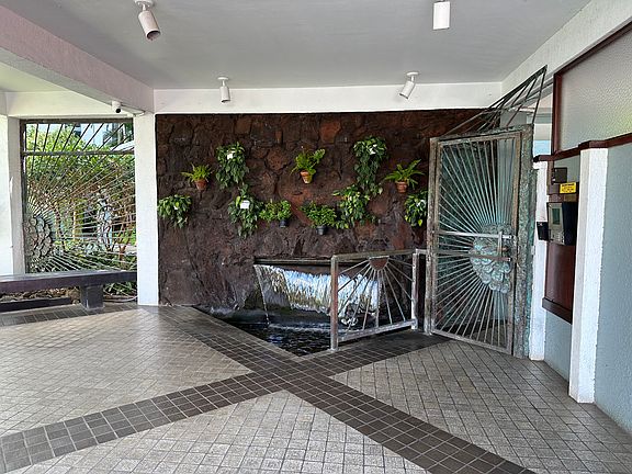 Private, Secure Top Floor Unit with lush views of gardens & water features below. 1 bedroom/1 bath, 4th floor apartment (865 sf). 9 ft ceilings w/full length windows for light & view. Portable ACs. Pass through kitchen perfect for counter stools. Electric stove/oven, microwave/hood fan, dishwasher, garbage disposal, refrigerator. Separate laundry room w/stack washer/dryer & electric water heater. Spanish tile & berber carpet. Linen look vertical blinds & drapes. An even better view? Your own 440 sf rooftop deck with mountain & canal views. Pool, jacuzzi, sauna, BBQ, recreation room, tennis/pickleball courts close by. Even a place to store your kayak, bike and surfboard. Plus your private storage in garage. Near to Kailua town shops, restaurants and #1 beach in the world. Secured building & night security. Resident manager. No smoking/no pets please. Water/sewer & 1 reserved covered parking stall included w/rent. Tenant pays for electricity & internet/cable. Renter's insurance required. $32 application fee. One year lease. Water/sewer & 1 reserved covered parking stall included w/rent. Tenant pays for electricity & internet/cable. Renter's insurance required. $32 application fee. One year lease.