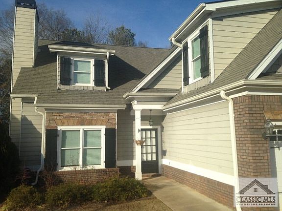 THE BEST DEAL IN THIS NORTH OCONEE NEIGHBORHOOD! This home has plenty of space and is in the North Oconee School District. With the Masters' Suite on the main level, there is a spacious great room with fireplace, hardwood floors and crown molding. The formal dining room and living room flow into the kitchen, complete with an additional breakfast area. The kitchen is adorned with natural cherry cabinets, tile floor and granite counters, stainless steel appliances, laundry closet, and a pantry. The half bath is also on the main floor. The master bath has a double vanity, along with a private soaking tub, toilet closet, and separate shower. Upstairs are three additional bedrooms plus, a bathroom, and a giant bonus room perfect for any activity. There is easy access to the patio area from the kitchen area. The exterior door also has pet door in place for your companions. The backyard is private and wooded and includes a storage building. The HOA takes care of landscaping while maintaining the community pool and tennis court. Triple Creek subdivision is convenient to shopping, schools, and the great Athens Area. View this home today. It's vacant and move-in ready!