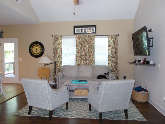 In the country but only minutes to I-24. One acre lot. Dead end street. Open concept. Living room has vaulted ceiling. Kitchen has stainless steel appliances. Lots of large windows overlooking private back yard. Covered deck and concrete patio.