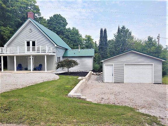 3 bedroom - 3 full baths home, remodeled in 2019 with main floor Master Suite, has over 2000 square feet of living space, is situated on 2 country acres and is ready for immediate occupancy. It features a newer furnace, appliances, fixtures, multiple ceiling fans, and much more. It is very well insulated (R60), and there's even a tanning bed upstairs. There is a 2 car garage, metal roofs on home and garage. Other features include a front covered porch, a front balcony, and a large back deck. The yard is nicely landscaped, and there are two sheds, one measuring 12 x 24, with the second being 8 x 8. An additional bonus is a large access site to the Pigeon River is just 1.5 miles up the road. It's a 12 minute drive to Burt/Mullett Lakes, and 25 minutes to Gaylord. All it needs now is you.