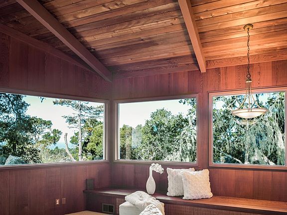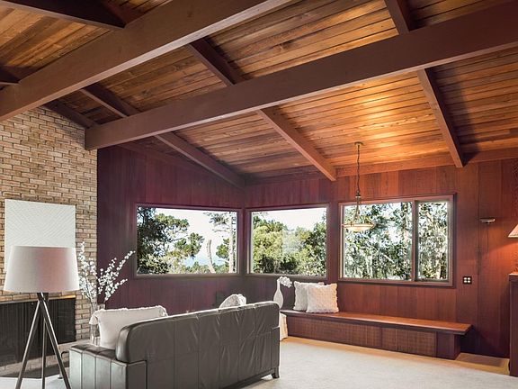 Mid Century Modern home with Big Sur ambiance offers golden opportunity. Interior wood finishes with high ceilings, multiple skylights, and filtered ocean views that are breathtaking. Features two bedrooms, two baths, 1653 sq. ft., plus a separate 200 sq. ft guest cottage.This private and peaceful sanctuary is sited on three 13,500 sq.ft lots. Could be purchased with 1028 Benito Ave., PG.