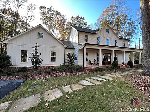 A must see, beautiful custom home just minutes from downtown Watkinsville in the desirable Bridlegate neighborhood. This home has so much to offer with a lot of unique features you won't find in most homes. Nestled among beautiful mature hardwoods on a 3+ acre estate lot with professional landscaping and an irrigation system. Step inside to an open floor plan with 10ft ceilings, ship lap, reclaimed hand hewn wood beams, built-in bookshelves and hardwood floors throughout the entire home. A beautiful, all white kitchen with custom cabinets, quartz countertops, a pot filler and KitchenAid stainless appliances including a commercial grade range/oven. A butlers pantry located off the kitchen with a wine cooler, extra storage and brick flooring. The main floor features a large owners suite with a spa like bath, beautiful tile work and a huge walk in closet. The main floor also opens onto a large back porch with an outdoor brick fireplace. Upstairs has an additional shared living space, a guest suite with a private bath and two additional bedrooms with a jack and jill bath. A finished space above the garage could make for a great office, play room, workout room or a third living space. You won't find another home like this in Oconee!