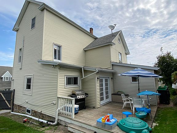 Large 2 story on corner lot with extra side street parking and a 2 stall garage. This 3 bedroom, 2 bath has new kitchen cabinets & countertops, floating shelves, new flooring, updated wiring and pex plumbing. Large walk-up attic with lots of storage (or possibly a 4th bedroom), tiled foyer with pellet stove, 1st floor laundry room and a mud room with patio doors leading to the deck and back yard.
